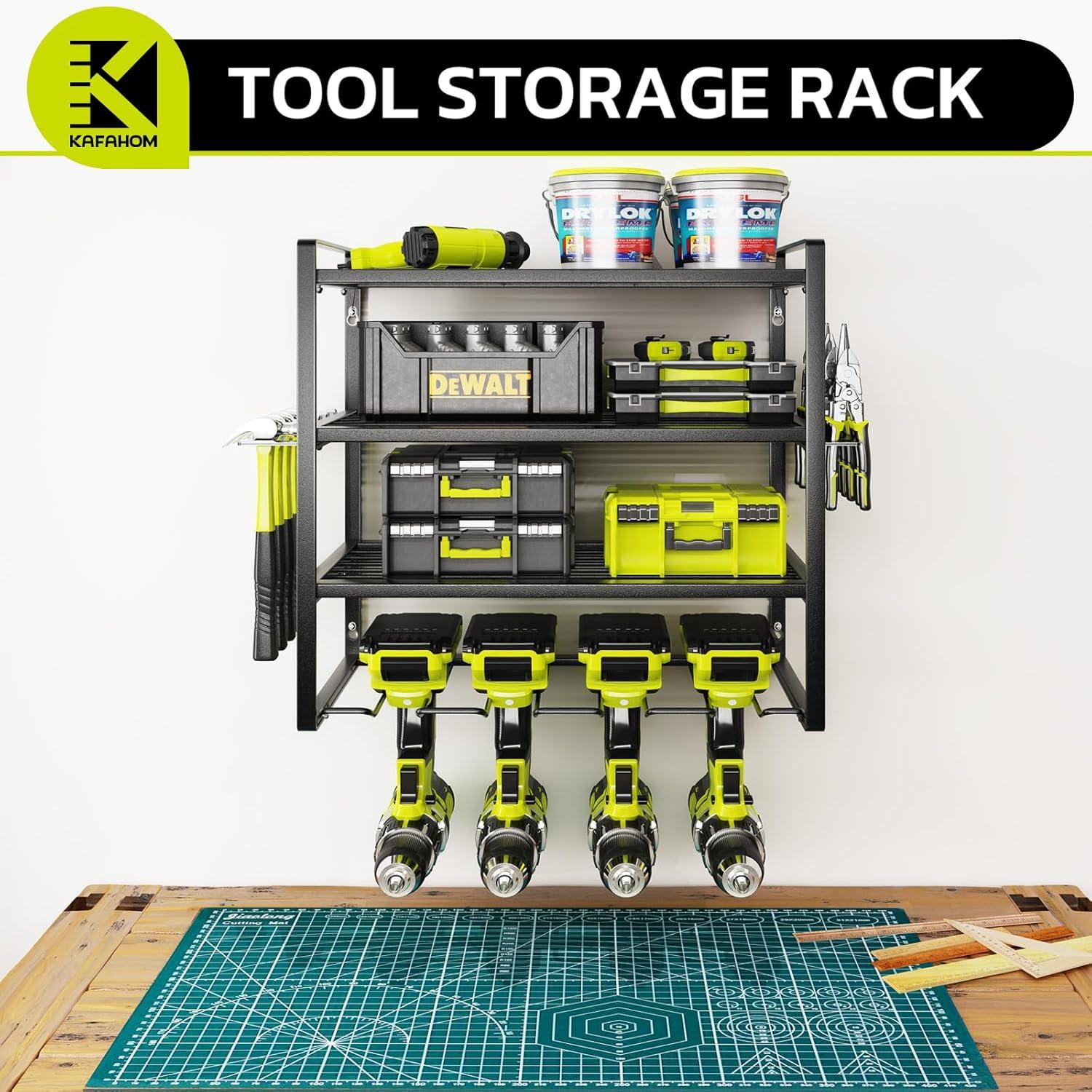 NEXT-LEVEL STORAGE SOLUTION: No more small parts scattered all over the place, and no more power tools that don't fit together! The KAFAHOM provided a bigger and more optimized heavy duty metal storage shelves for all power tools and their compatible accessories. Behold, three levels of space, each with its own purpose, busy but never flustered.