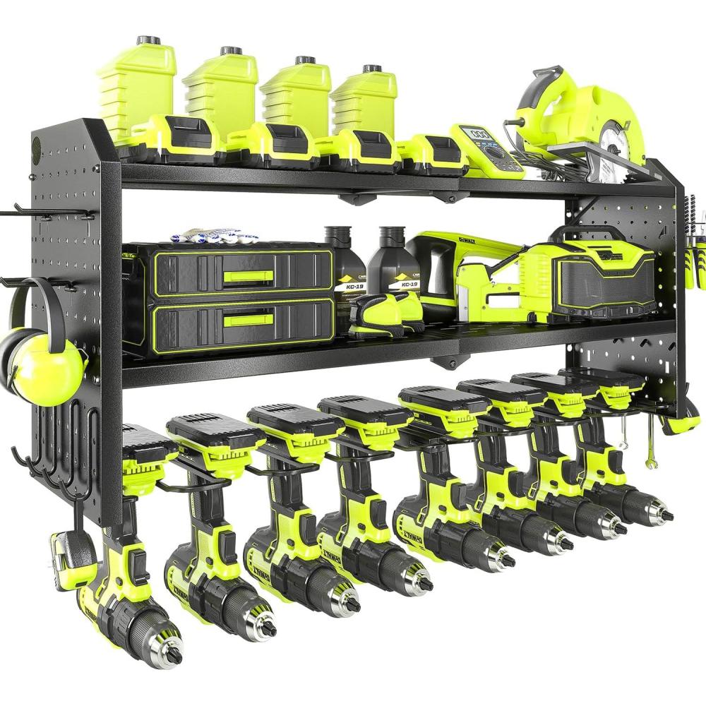 Easy Assembly: The heavy duty metal power tool storage rack is designed for effortless setup. The enlarged structure with a foldable center section allows for simple installation by attaching the left and right sides before mounting onto the wall. Whether you are a beginner in workmanship or a veteran, it will be a nice and easy task to assemble.
