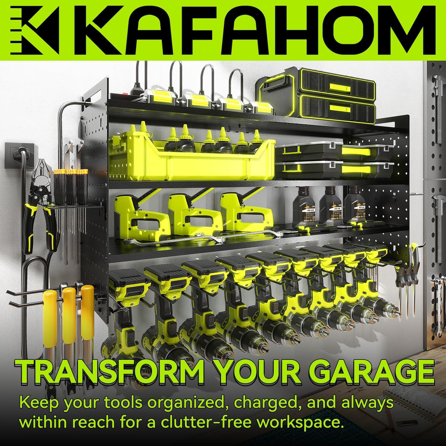 Premium Craftsmanship: Experience superior quality with the KAFAHOM tool storage for garage organization's impeccable craftsmanship. With minimal weld points and precision machining, every component is meticulously finished with powder coating for rust resistance. The power tool rack is built to last.