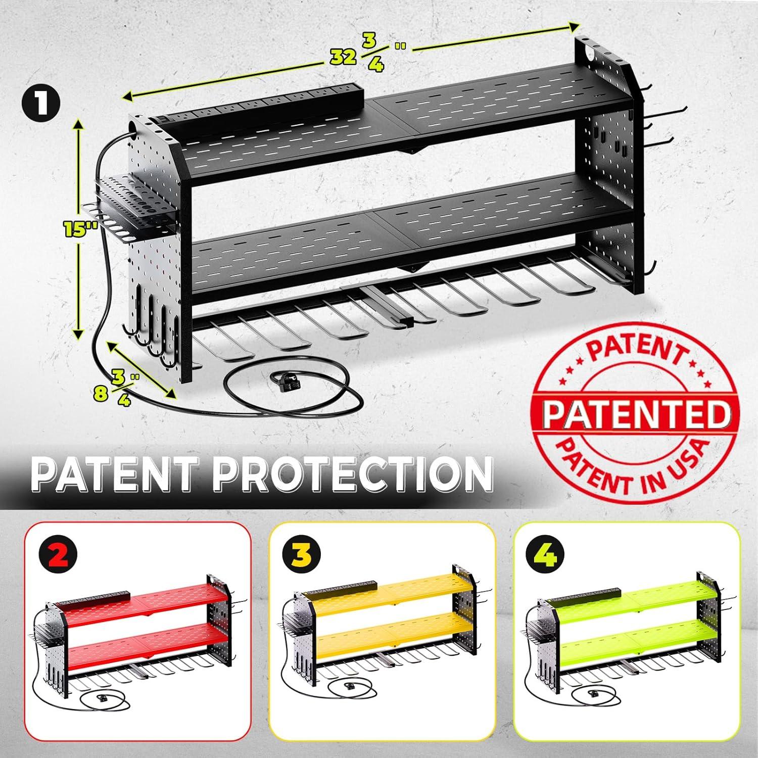 Efficient Storage: The KAFAHOM Electric Tool Rack is designed with three tiers and eight dedicated slots to efficiently store your electric tools. The top tier features a built-in charging station, enabling direct charging while tools are stored.The power cord is 7 FT long 14AWG,and the charging station is 15A 125VAC 1875W 60Hz.