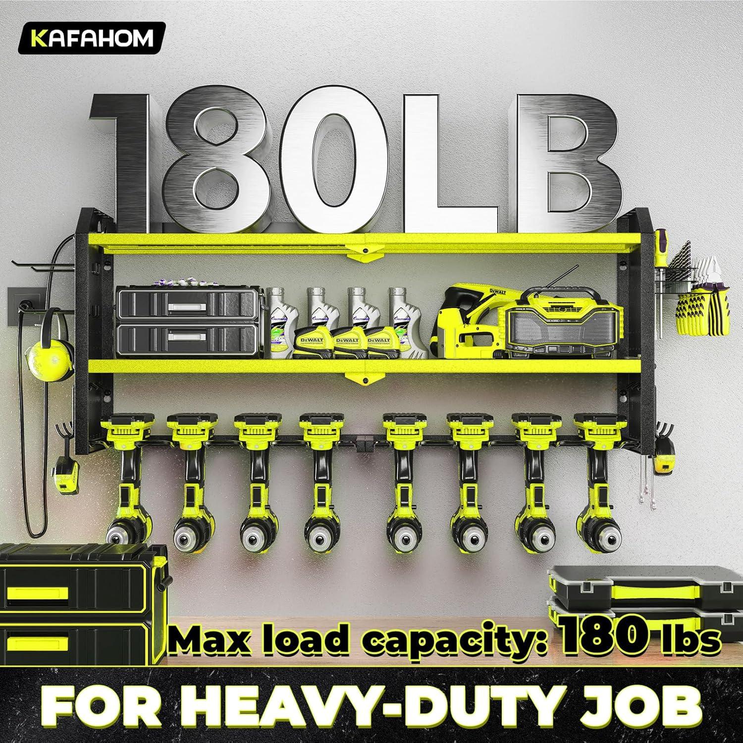Robust Construction: Built to last, KAFAHOM tool box organizers and storage wall mount features a sturdy alloy frame and reinforced double-layered metal plates for exceptional load-bearing capacity. It's the ideal utility cordless drill holder for a wide range of tools and accessories.